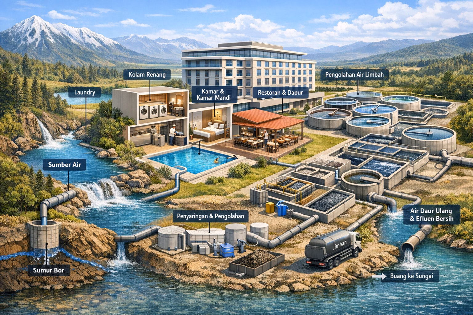 Management pengelolaan air industri spesifik industri perhotelan dapat diatur sedemikian rupa sehingga tercipta efisiensi pengelolaan air.